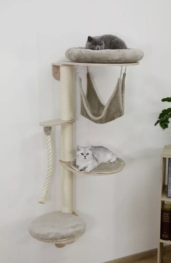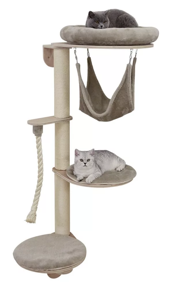 This gorgeous wall mounted cat furniture is an adventure playground for your feline and the hanging swinging hammock is incredibly fun as your feline will laze around and watch the world go by.