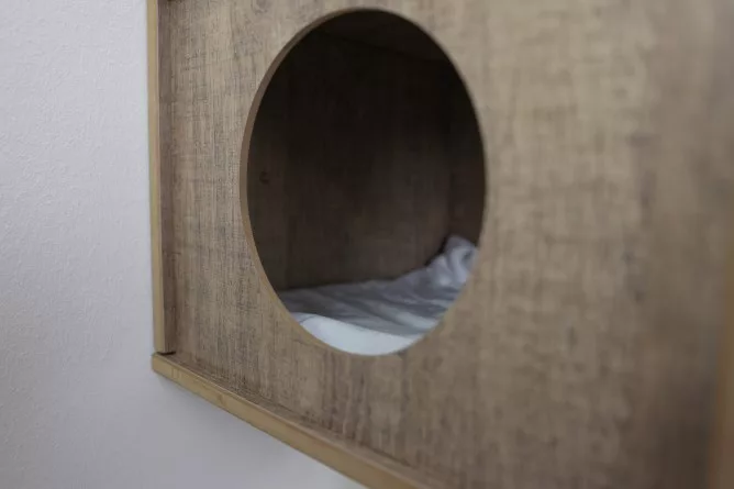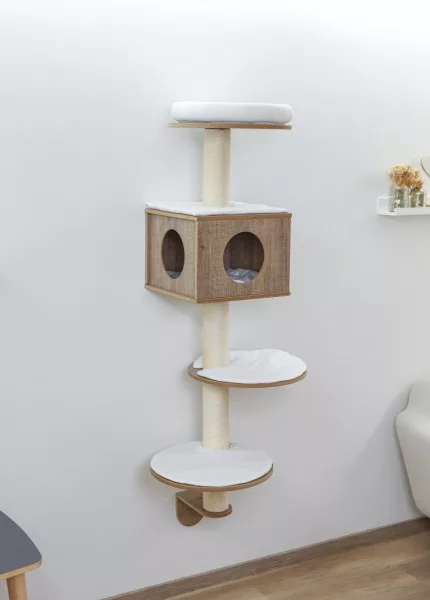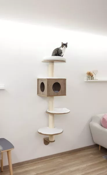 One of the standout features of the Dinari Cat Tree is its wall-mounted design. This innovative feature not only saves valuable floor space but also provides a unique and elevated play area for your cat. The tree is easily mounted on the wall, offering a safe and secure environment for your feline friend to explore and relax.