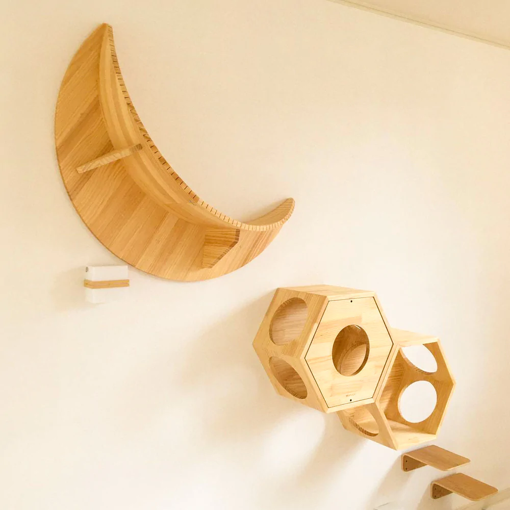 Crescent in shape and equipped with a slotted platform for easy and safe mobility, the Luna allows the cat to be perched, viewing from above.