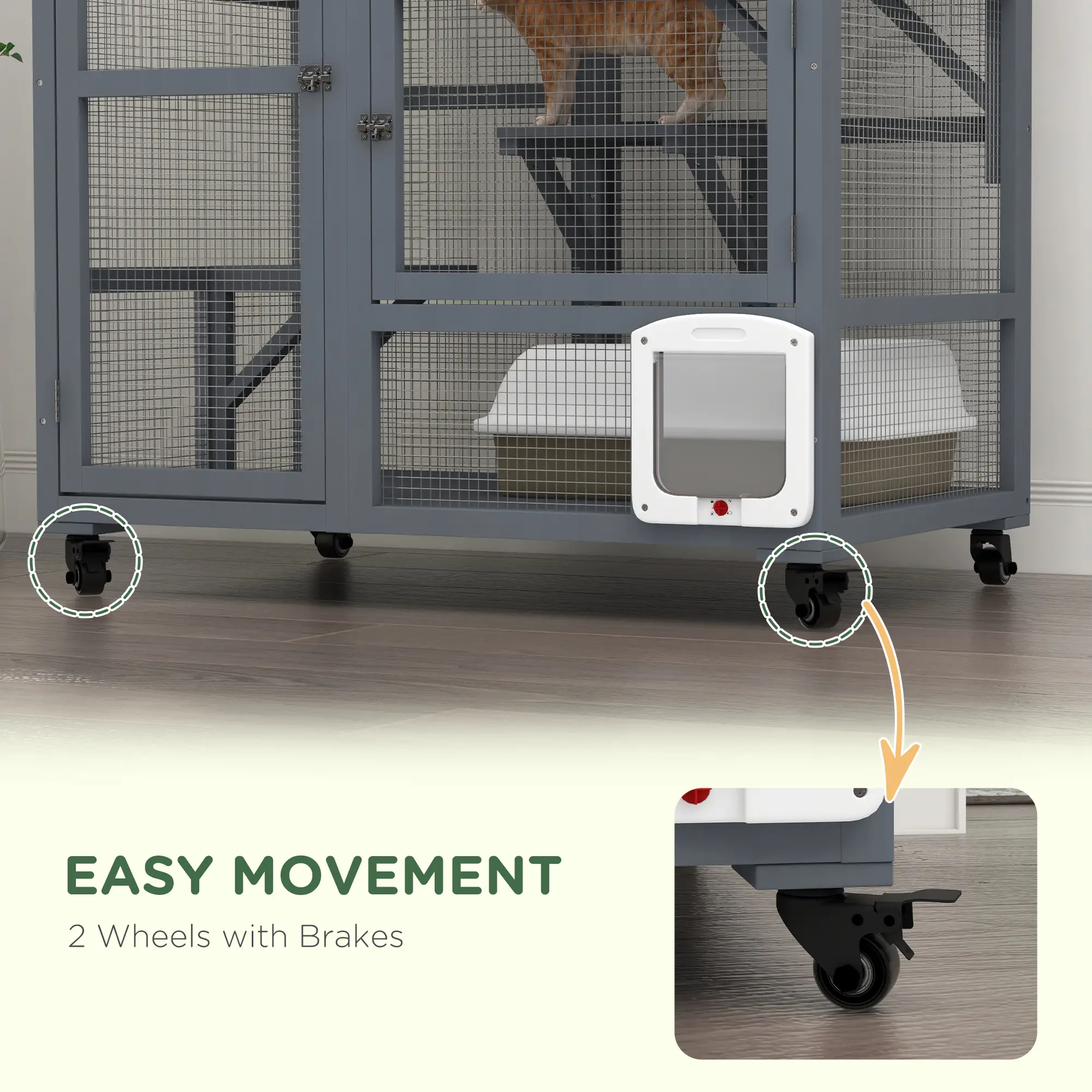 The Wooden Indoor Catio Cat Enclosure is a spacious and secure outdoor enclosure designed to give cats a safe way to enjoy the outdoors. Crafted from solid fir wood and finished with a weather-resistant asphalt roof, this enclosure protects against sun and rain, making it ideal for use in gardens, patios, or balconies. Four wheels, two of which lock, allow the entire structure to be moved easily and safely into sun or shade as needed.